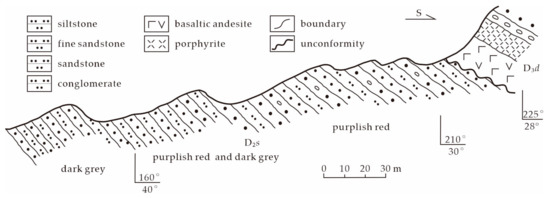 - Li, X.M.; Yu, J.Y.; Wang, G.Q.; Wu, P.; Zhou, Z.Q. LA-ICP-MS zircon U-Pb dating of Devonian Sangejing Formation and Dundunshan Group in Hongliuyuan, Beishan area, Gansu Province. Geol. Bull. China. 2011, 30, 1501–1507, (In Chinese with English Abstract). [Google Scholar]