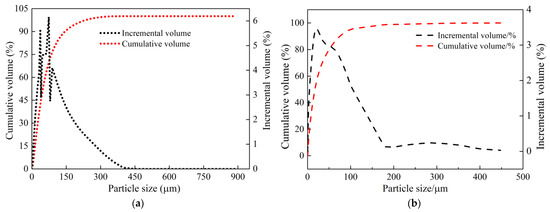 Particle size distribution of sulfur concentrate and tailings: (a) sulfur concentrate; (b) tailings.
