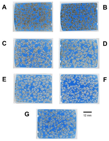 It is important to mention that the size of the cuttings varied in the real cutting samples, as no sieving was performed before thin section preparation to avoid time-consuming sample manipulation and potential biases. The relatively small size of the cuttings in some samples hindered their identification and extraction for processing (Figure 9). Moreover, these small-sized cuttings likely do not meet the minimum representative elementary area (REA) required for computation to obtain petrophysical properties.