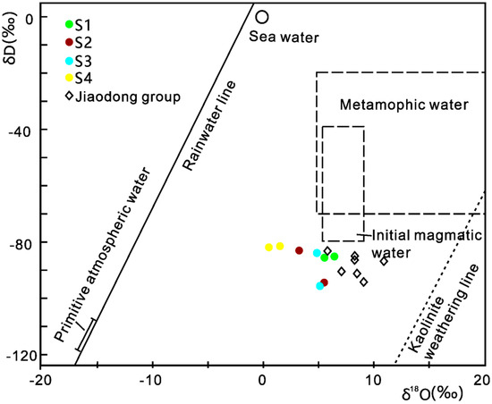 Hydrogen–oxygen isotope data of the Jiaodong Group and Jinqingding gold deposit.