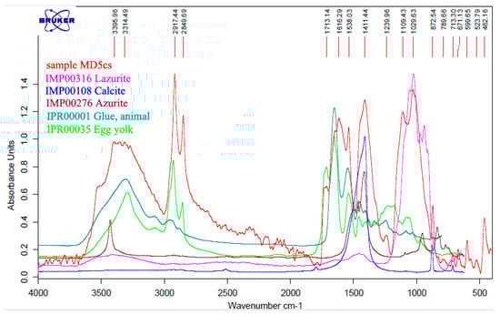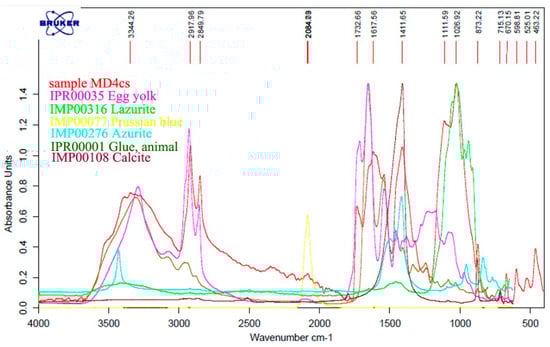 ATR-FTIR spectra of sample MD4cs blue (Mother of God with Jesus Child icon).