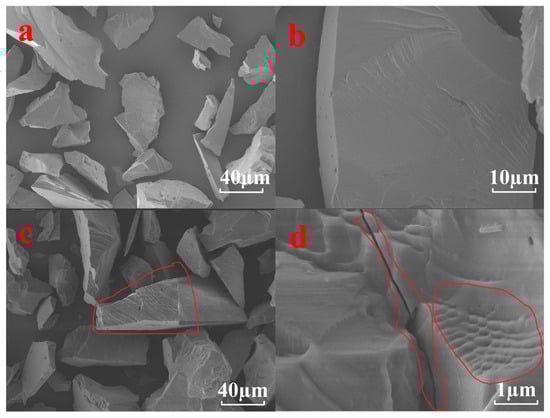 SEM pattern of quartz: (a,b) Quartz sample before calcination; (c,d) Quartz sample after calcination. (Electronic signal: secondary electrons).