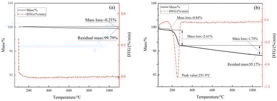 The TG-DTG curve of the sample: (a) Curves of individually calcined quartz; (b) Curve of mixed calcination of quartz and NH4Cl (2 wt%).