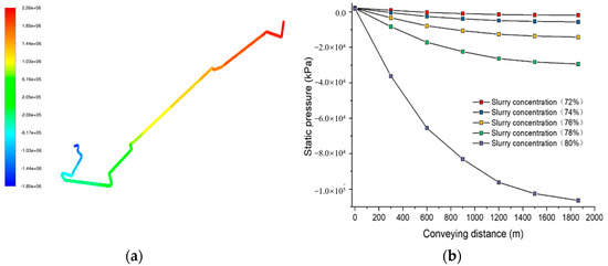 Analysis of flow field characteristics under different transporting concentrations. Adapted from Ref. [28]. (a) Distribution diagram of the pipeline transportation resistance, (b) Distribution curve of pipeline transportation resistance.