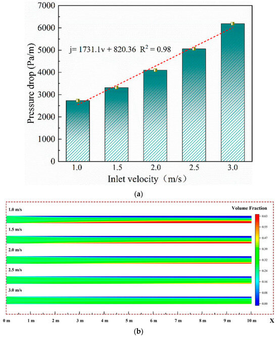 Effect of feeding speed on slurry conveying characteristics. Adapted from Ref. [52]. (a) Pressure drop at different inlet velocity, (b) The volume fraction distribution on the central vertical axial plane.