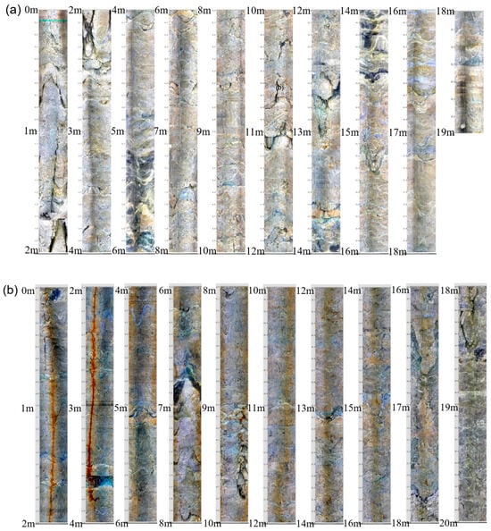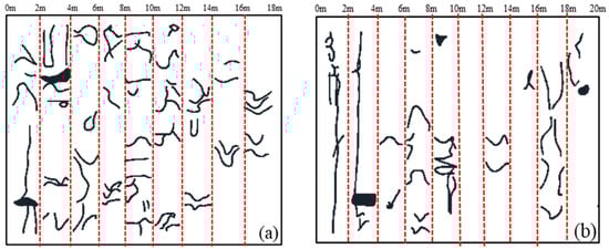 Borehole observations of rock fractures in undersea mining: (a) No.01 and (b) No.02.