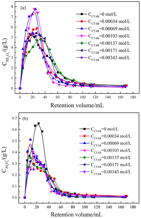 Through preliminary exploration, it was found that surfactant CTAB had a better effect on RE leaching. Thus, the effect of CTAB and ammonium sulfate compounding on the leaching mass transfer process of RE and Al under different conditions was investigated. By analyzing the outflow curve of RE and Al and calculating with the chromatographic plate theory, the influence law of complex leaching of RE and Al with CTAB and (NH4)2SO4 under different conditions was obtained to enhance the leaching process by minimizing the use of leaching agent, improving its percolation rate, and reducing the leaching time. It provides a theoretical basis for the development of high-efficiency leaching agents and technologies for weathered crust elution-deposited rare earth ore and offers valuable insights for research on enhancing mass transfer through surfactant compound processes.