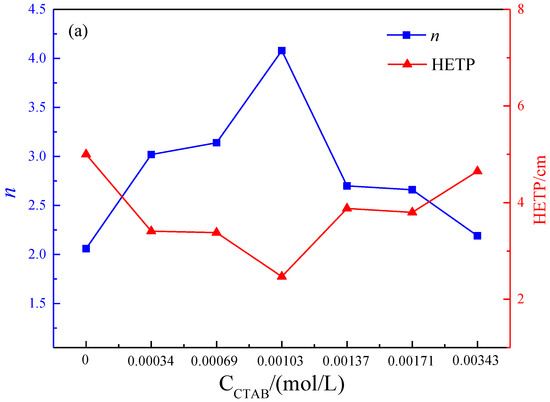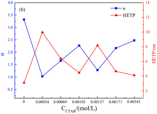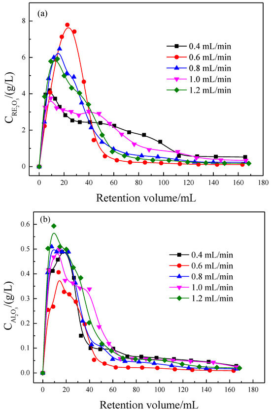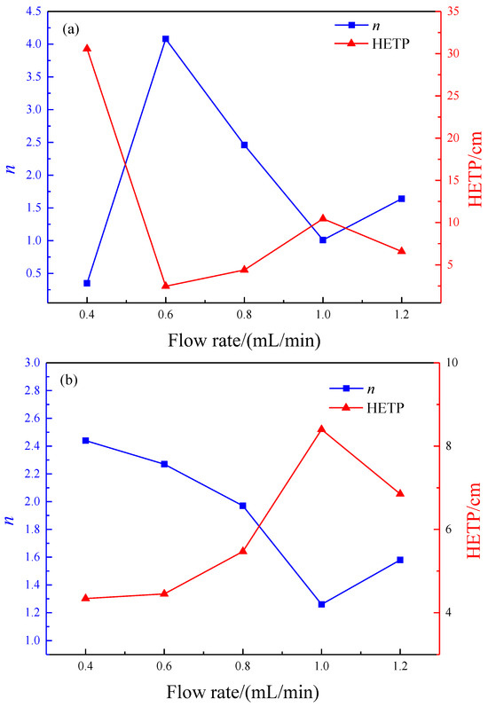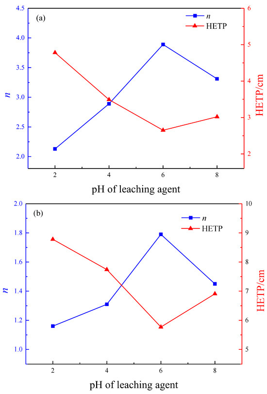 As the pH of the leaching solution increases, the theoretical number of plates for RE and Al leaching increases, while the HETP gradually decreases, leading to a higher mass transfer driving force and improved leaching mass transfer efficiency. Minimum HETP reached at pH 6. Due to the good pH buffering properties of clay minerals, there is no need to adjust the pH of the leaching solution in the leaching operation of rare earth ore. As the flow rate of the leaching solution increases, the theoretical number of RE plates increases and HETP decreases. The driving force for mass transfer in rare earth leaching is greater and the mass transfer efficiency is higher. As the HETP of aluminum increases, the efficiency of mass transfer decreases. Moreover, the efficiency of mass transfer for RE is greater than that of Al. When the optimal flow rate of the composite leaching agent is 0.6 mL/min, it has the highest RE mass transfer efficiency and inhibits Al leaching to a certain extent. This suggests that the compound leaching agent comprising ammonium sulfate and CTAB holds significant potential for practical utilization in extracting rare earth from weathered crust elution-deposited rare earth ore.