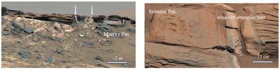 - Fedo, C.; Grotzinger, J.; Gupta, S.; Stein, N.T.; Watkins, J.; Banham, S.; Edgett, K.S.; Minitti, M.; Schieber, J.; Sebach, K.; et al. Facies Analysis and Basin Architecture of the Upper Part of the Murray Formation, Gale Crater, Mars. In Proceedings of the Lunar and Planetary Science Conference 48, Woodlands, TX, USA, 20–24 March 2017; Available online: https://www.hou.usra.edu/meetings/lpsc2017/pdf/1689.pdf (accessed on 3 May 2024).