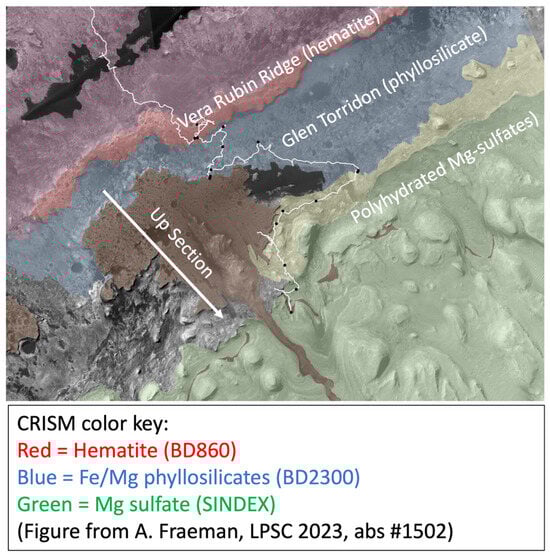 - Sheppard, R.Y.; Milliken, R.E.; Parente, M.; Itoh, Y. Updated perspectives and hypotheses on the mineralogy of lower Mt. Sharp, Mars, as seen from orbit. J. Geophys. Res. Planets 2021, 126, e2020JE006372. [Google Scholar] [CrossRef]