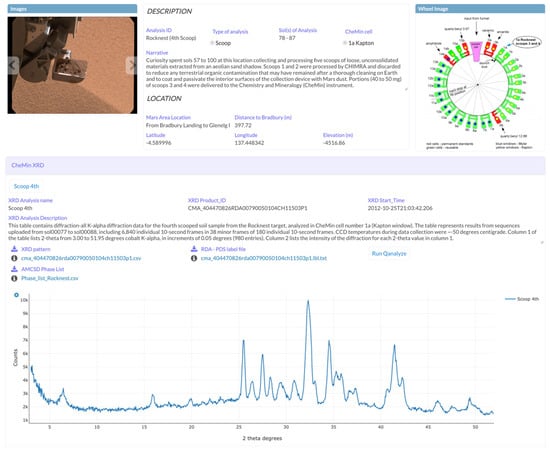 All raw data from the CheMin instrument are downloadable from the “Gale Crater Mineralogy and Geochemistry Sample Database” [], as well as 2D and 1D diffraction patterns, crystallographic information files (CIFs) files chosen for quantitative analyses and cell parameter refinement, our preferred analytical result, companion data from other instruments, and all papers published by the CheMin science team.