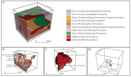 (3) Multiple data sources, including boreholes and geophysical exploration, were utilized to model mineral deposits (Figure 5A,D).