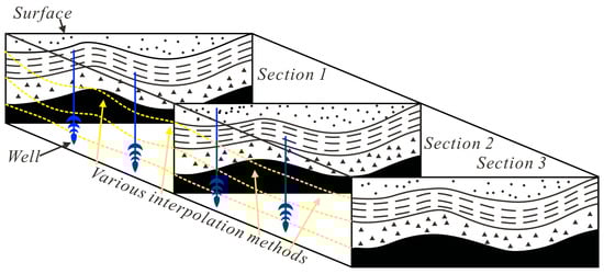 The evolving global economy and the escalating national energy demand have highlighted the challenges posed by resource scarcity [1,2,3,4]. Consequently, nations are increasingly relying on geospatial data for the effective management of resources and the environment, thereby propelling the progress of geospatial science [5,6,7,8]. Geological modelling harnesses spatial technologies such as GPS, GIS, and RS, underpinned by computing and communication technologies, to realize the “Digital Earth” vision [9,10,11]. Geological modelling integrates multidomain data to construct spatial information models [12,13]. Three-dimensional (3D) geological modelling techniques synergize geology and computing, enabling the extraction of valuable insights from data and facilitating research and resource prediction.