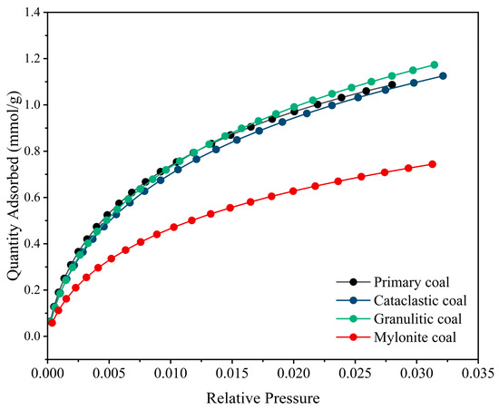 CO2 gas adsorption isotherms of tectonic coal samples.