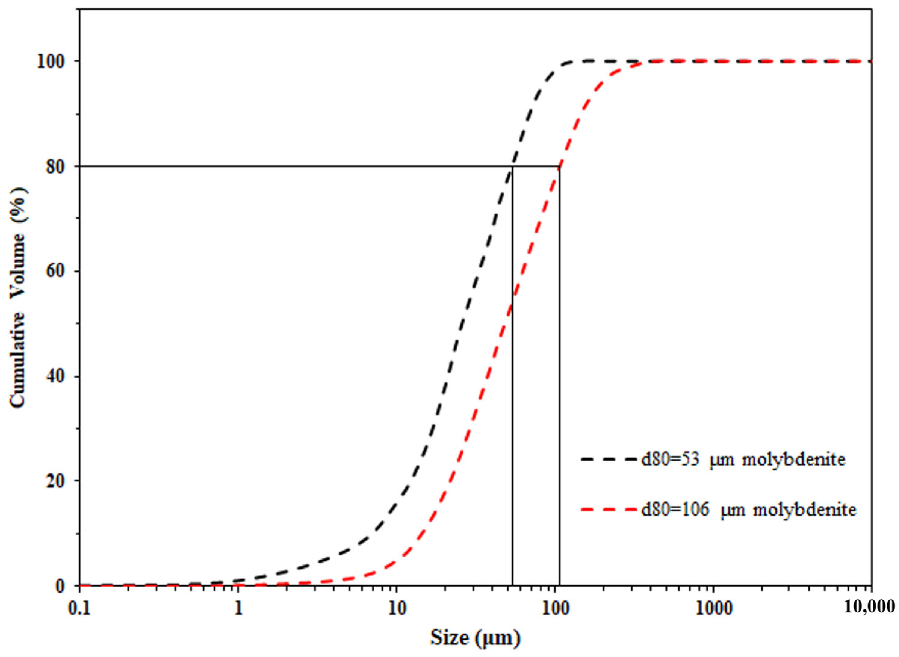 - Yang, B.; Song, S.; Lopez-Valdivieso, A. Effect of Particle Size on the Contact Angle of Molybdenite Powders. Miner. Process. Extr. Metall. Rev. 2014, 35, 208–215. [Google Scholar] [CrossRef]