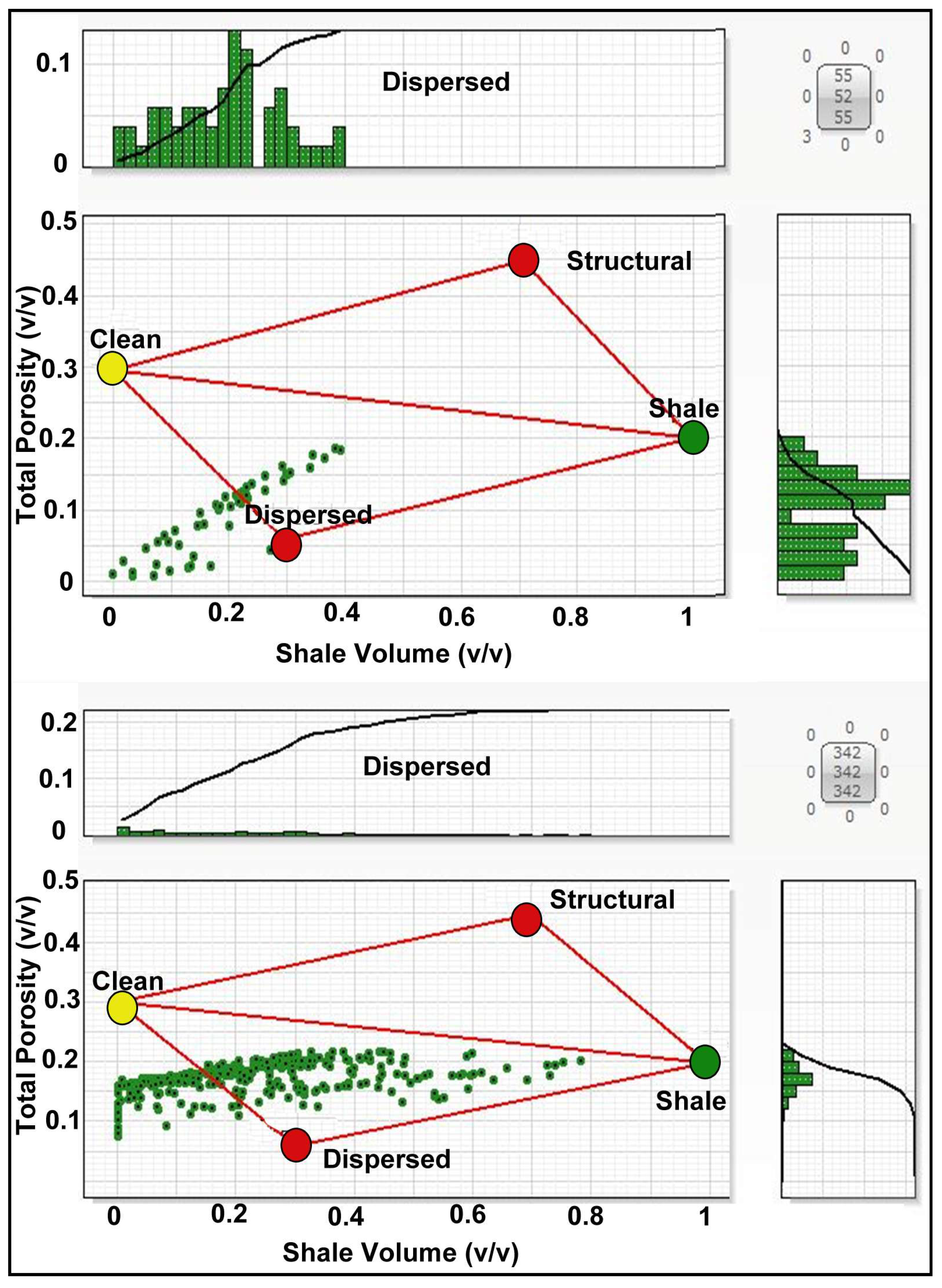 - Juhasz, I. Assessment of the distribution of shale, porosity and hydrocarbon saturation in shaly sands. In Proceedings of the 10th European Formation Evaluation Symposium Transactions, Aberdeen, UK, 22–25 April 1986; Volume 10. [Google Scholar]
