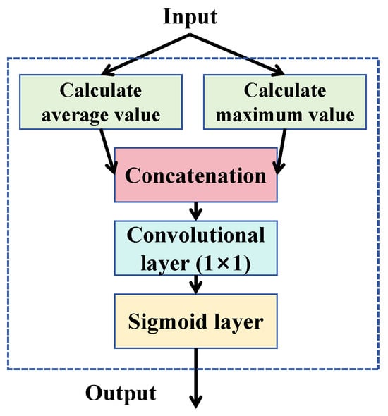 The spatial attention mechanism, as shown in Figure 4, first computes the average and maximum values across the channel dimension for each spatial location, capturing global spatial statistics. These two feature maps are concatenated along the channel axis and passed through a convolutional layer to produce a single-channel spatial attention map. Finally, a sigmoid activation function is applied to generate the spatial attention weights, which are used to refine the feature map by emphasizing informative spatial regions.