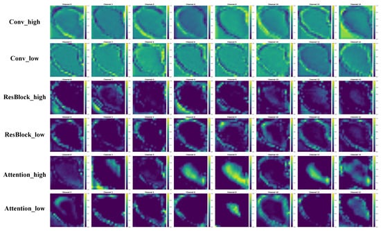 The interpretability of a neural network’s feature learning during classification can be enhanced through the visualization of intermediate feature maps. In this study, a channel visualizer employing deconvolution and directed backpropagation algorithms was utilized to illuminate the “black box” nature of the model’s training process. Figure 5 presents the channel visualization diagram of our network on the given dataset.
