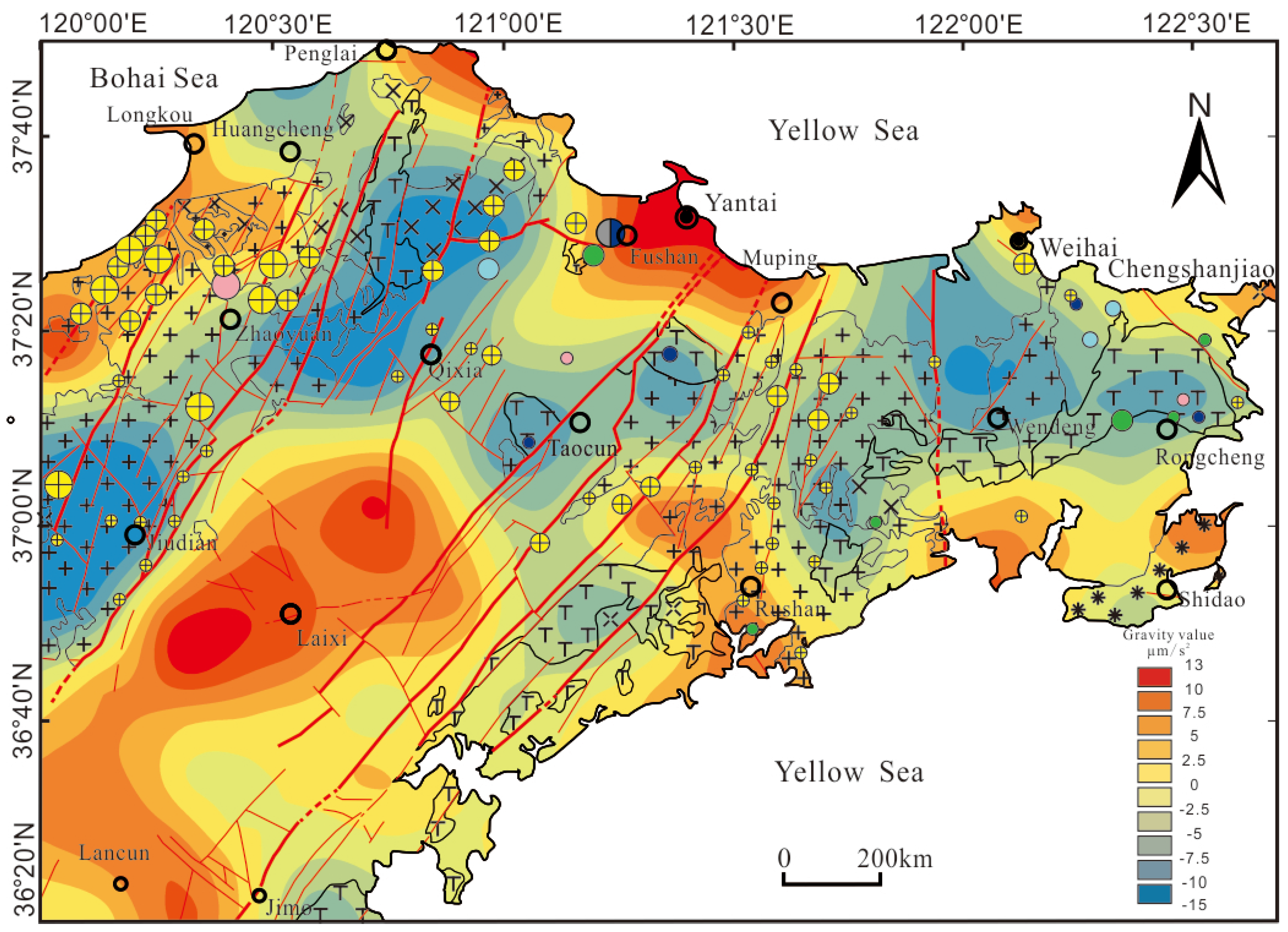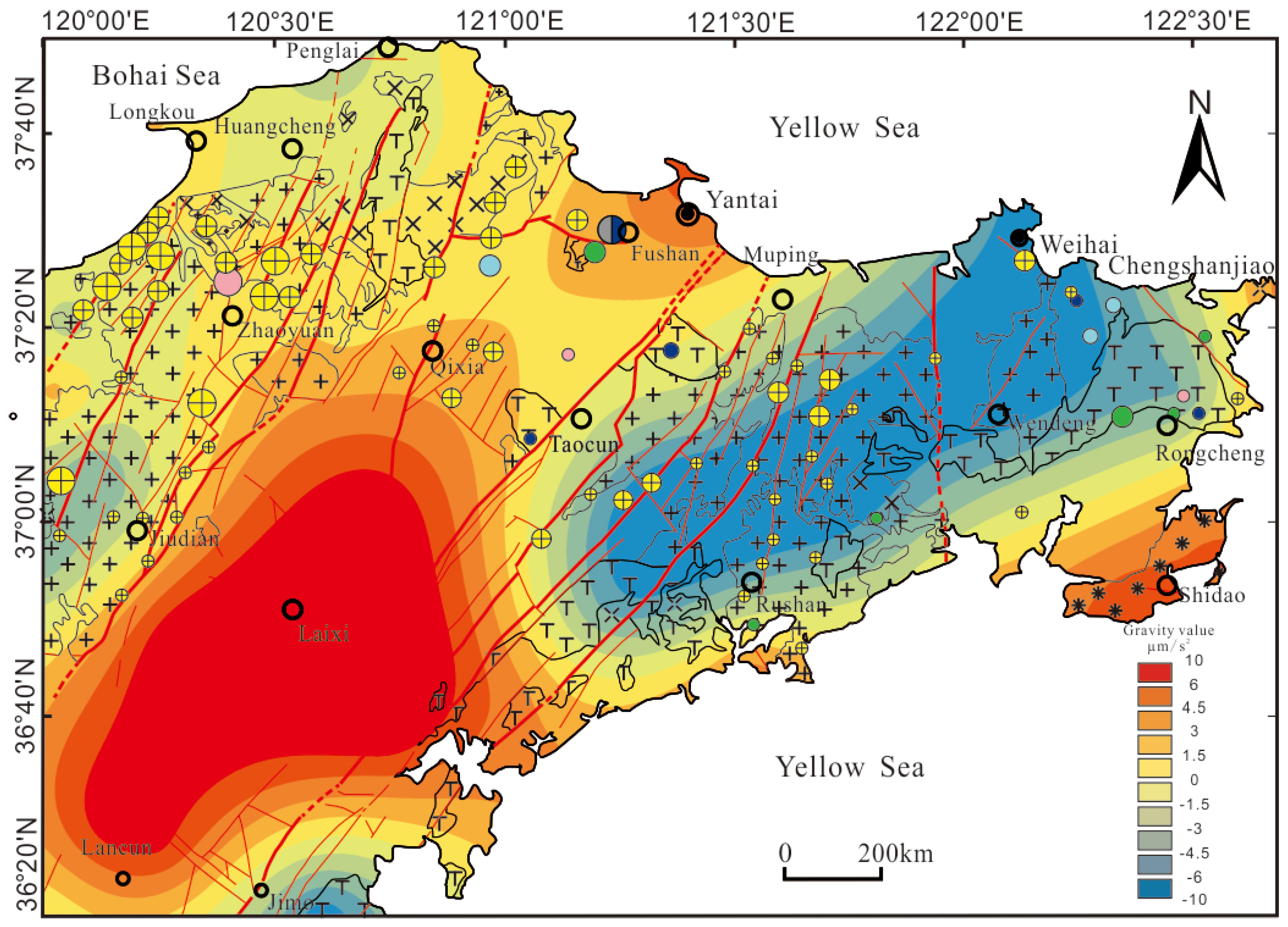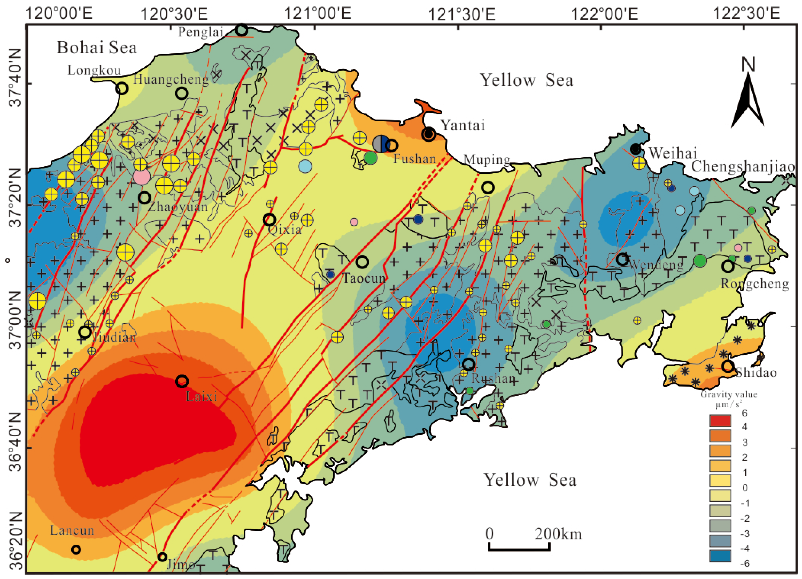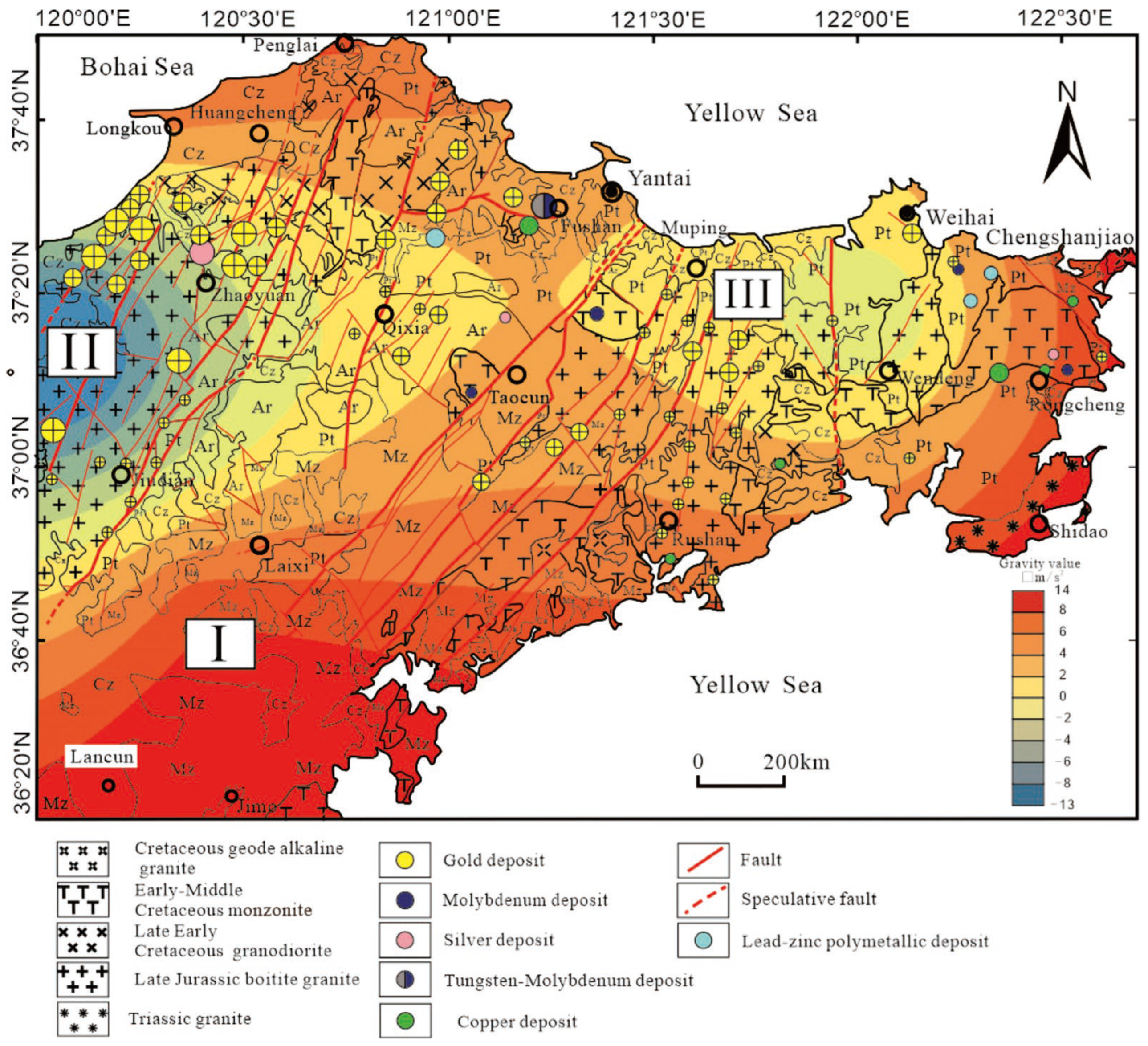 - Guo, P.; Santosh, M.; Li, S. Geodynamics of Gold Metallogeny in the Shandong Province, NE China: An Integrated Geological, Geophysical and Geochemical Perspective. Gondwana Res. 2013, 24, 1172–1202. [Google Scholar] [CrossRef]