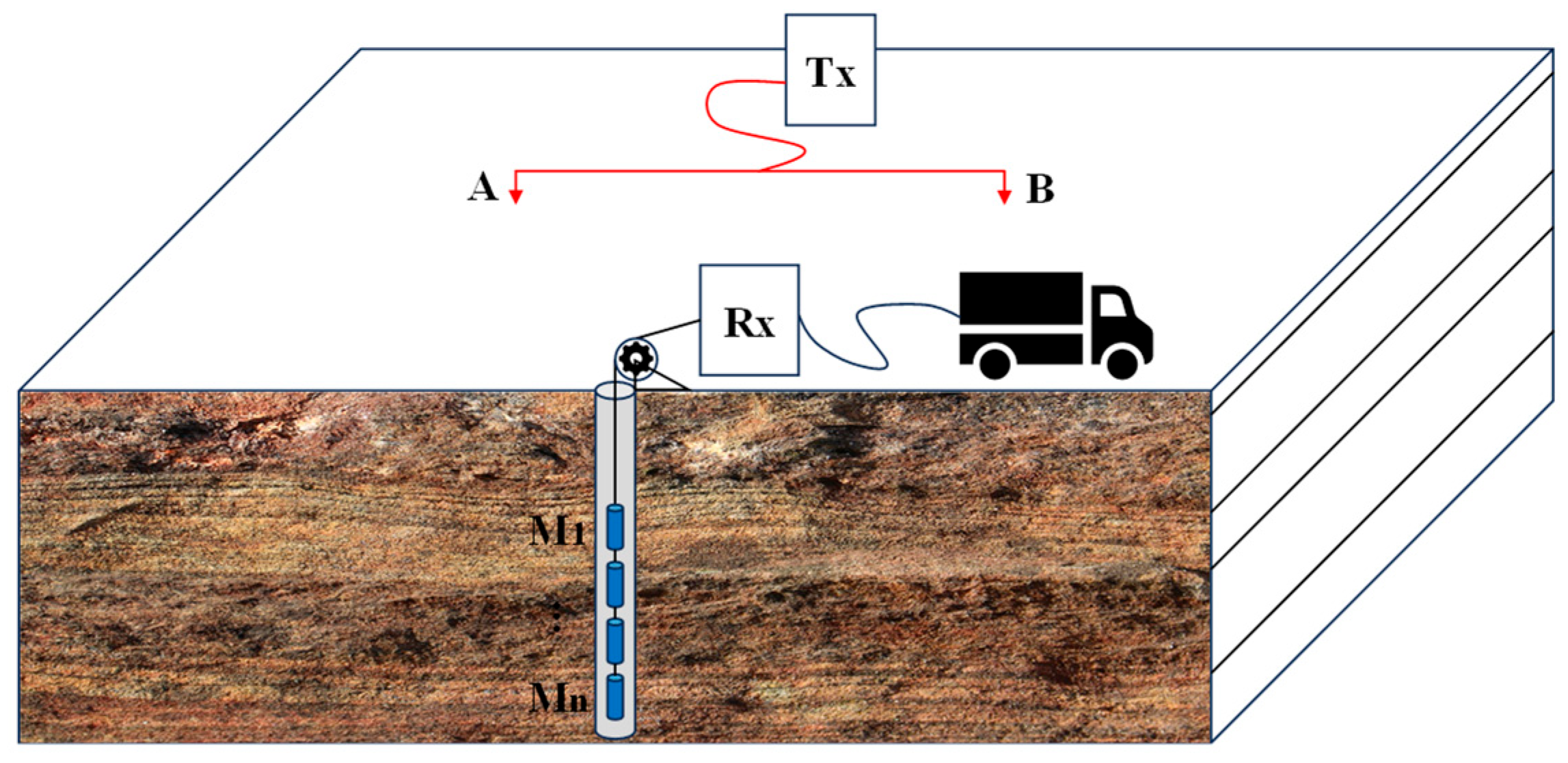 - Li, H.J.; Mao, Y.R.; Wang, X.Y.; Yan, L.J.; Zhou, L. Surface-borehole transient electromagnetic responses in 3D anisotropic media. Oil Geophys. Prospect. 2024, 59, 1184–1196. [Google Scholar]