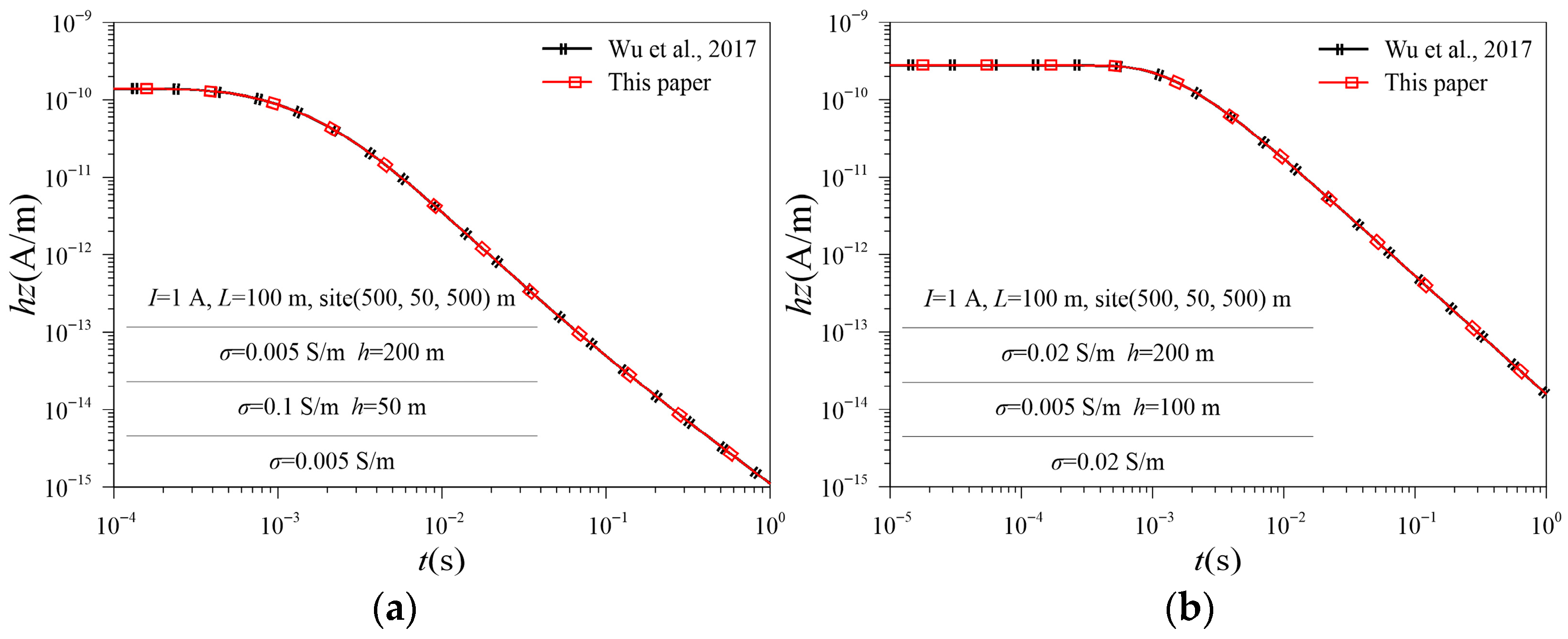 - Chen, W.Y.; Han, S.; Khan, M.Y.; Chen, W.; Yiming, H.; Zhang, L.; Hou, D.Y.; Xue, G.Q. A Surface-to-Borehole TEM System Based on Grounded-wire Sources: Synthetic Modeling and Data Inversion. Pure Appl. Geophys. 2020, 177, 4207–4216. [Google Scholar]