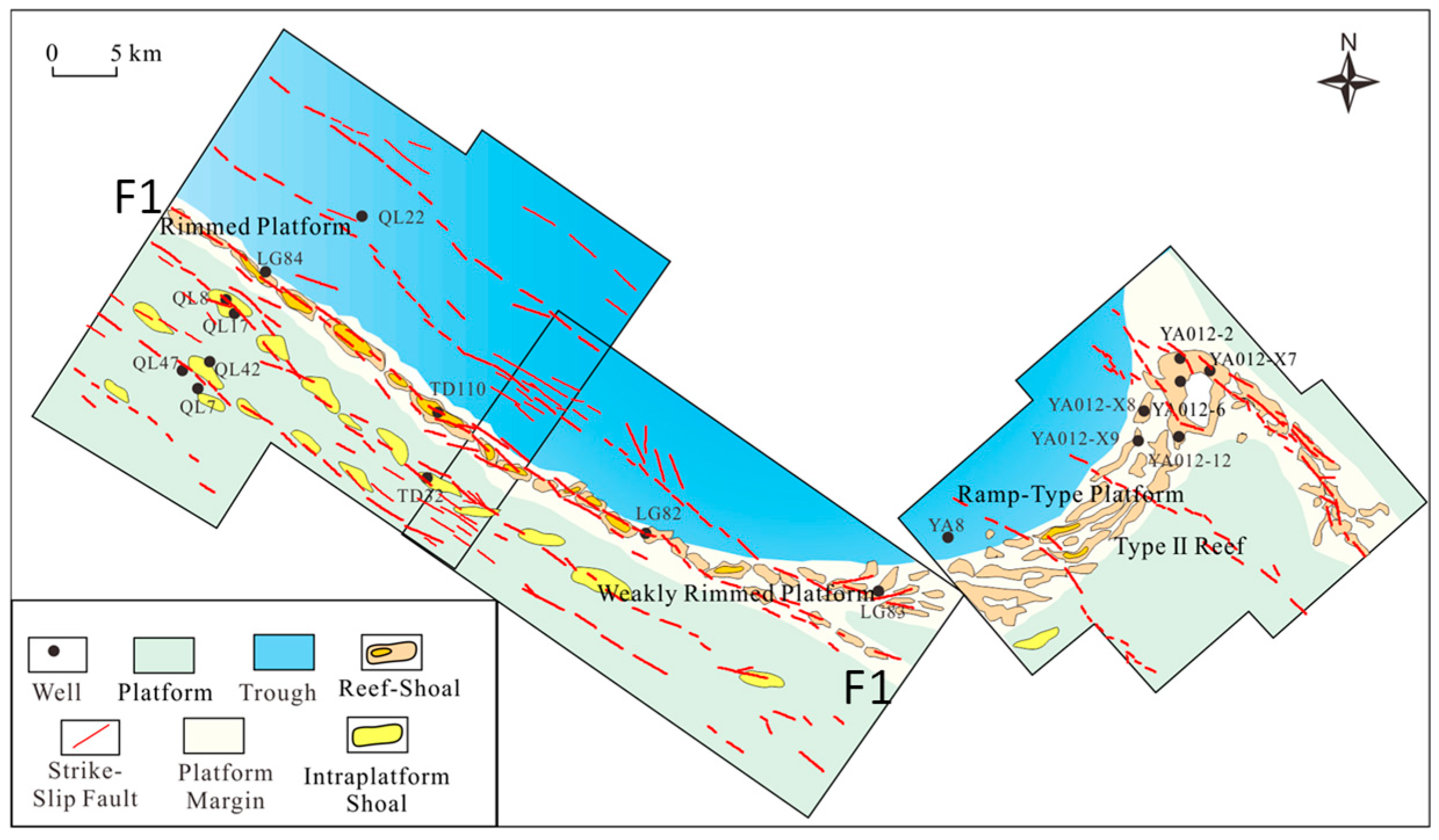 4.1. The Strike–Slip Fault Distribution in the Platform Margin