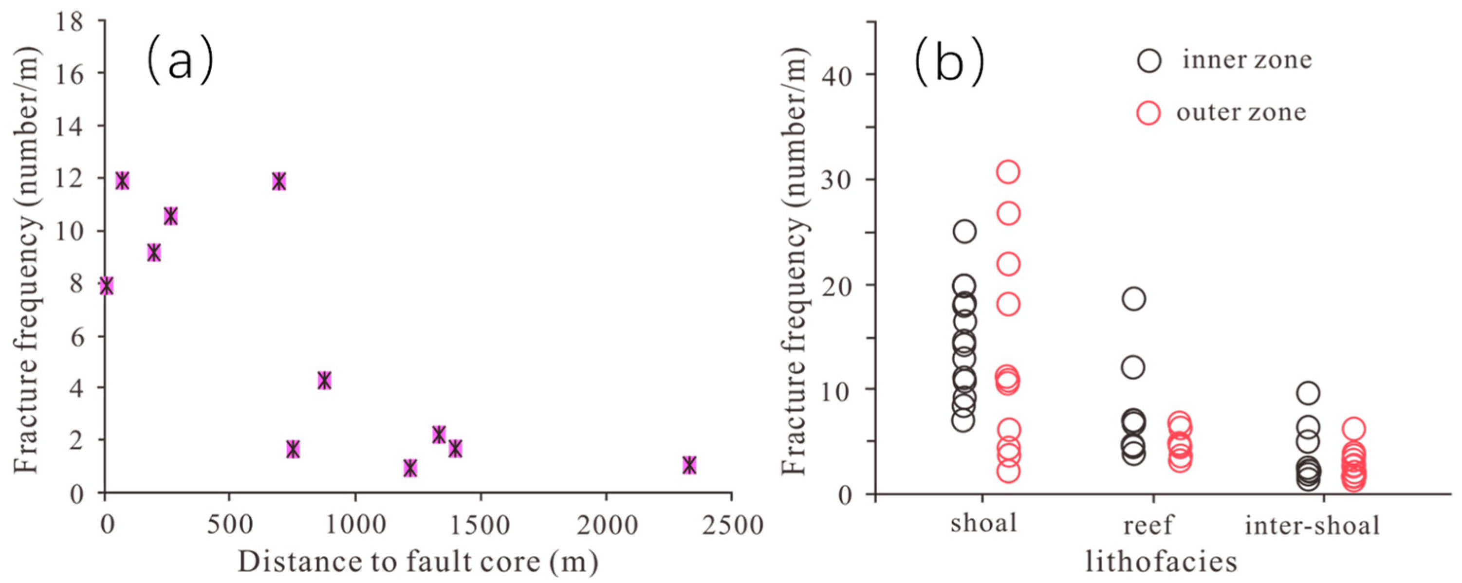 5.2. Fault Effect on Reef–Shoal Reservoirs