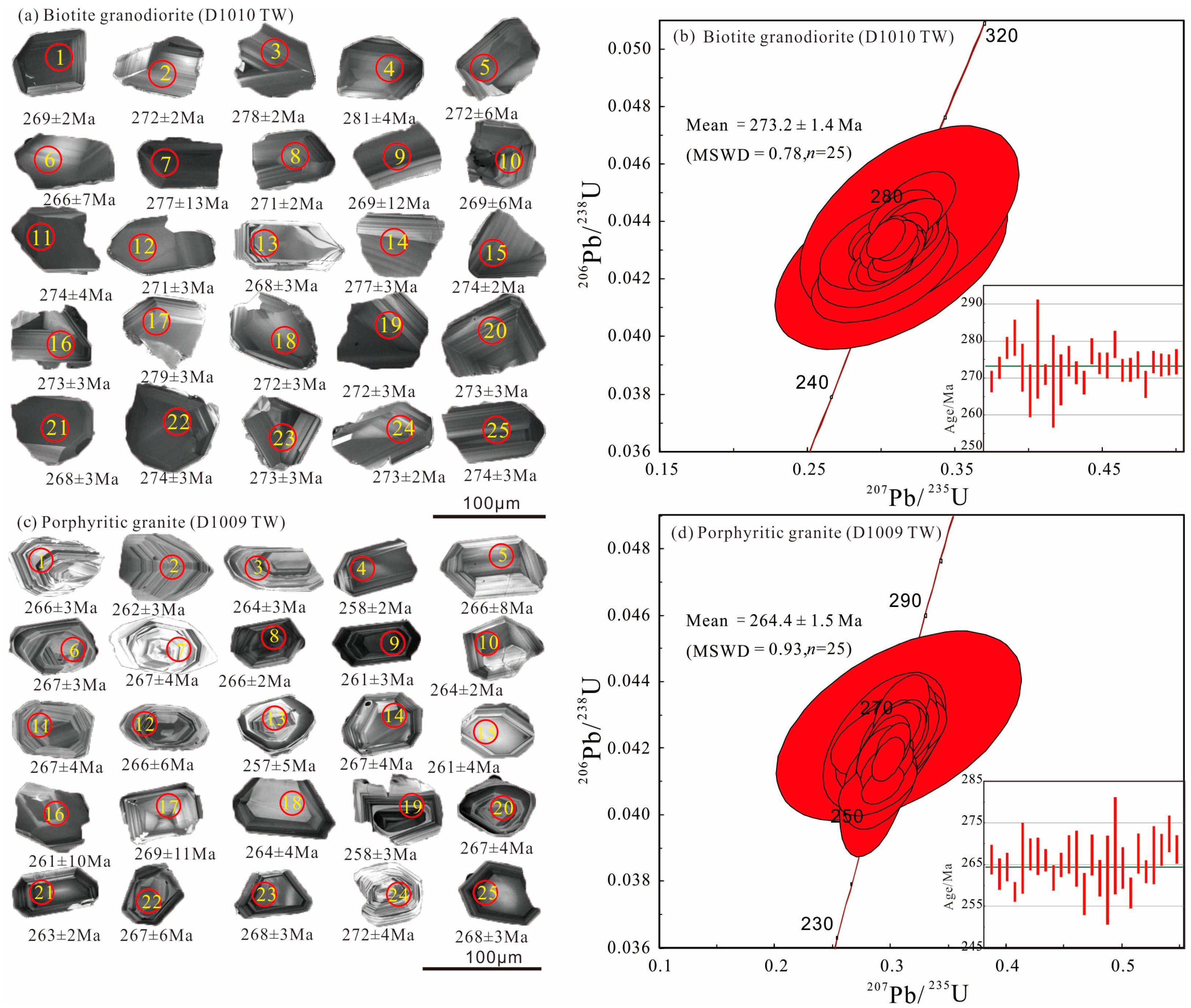 Table 3. The U–Pb isotope composition of zircon for sample D1009 TW of porphyritic granite of the Middle Permian.