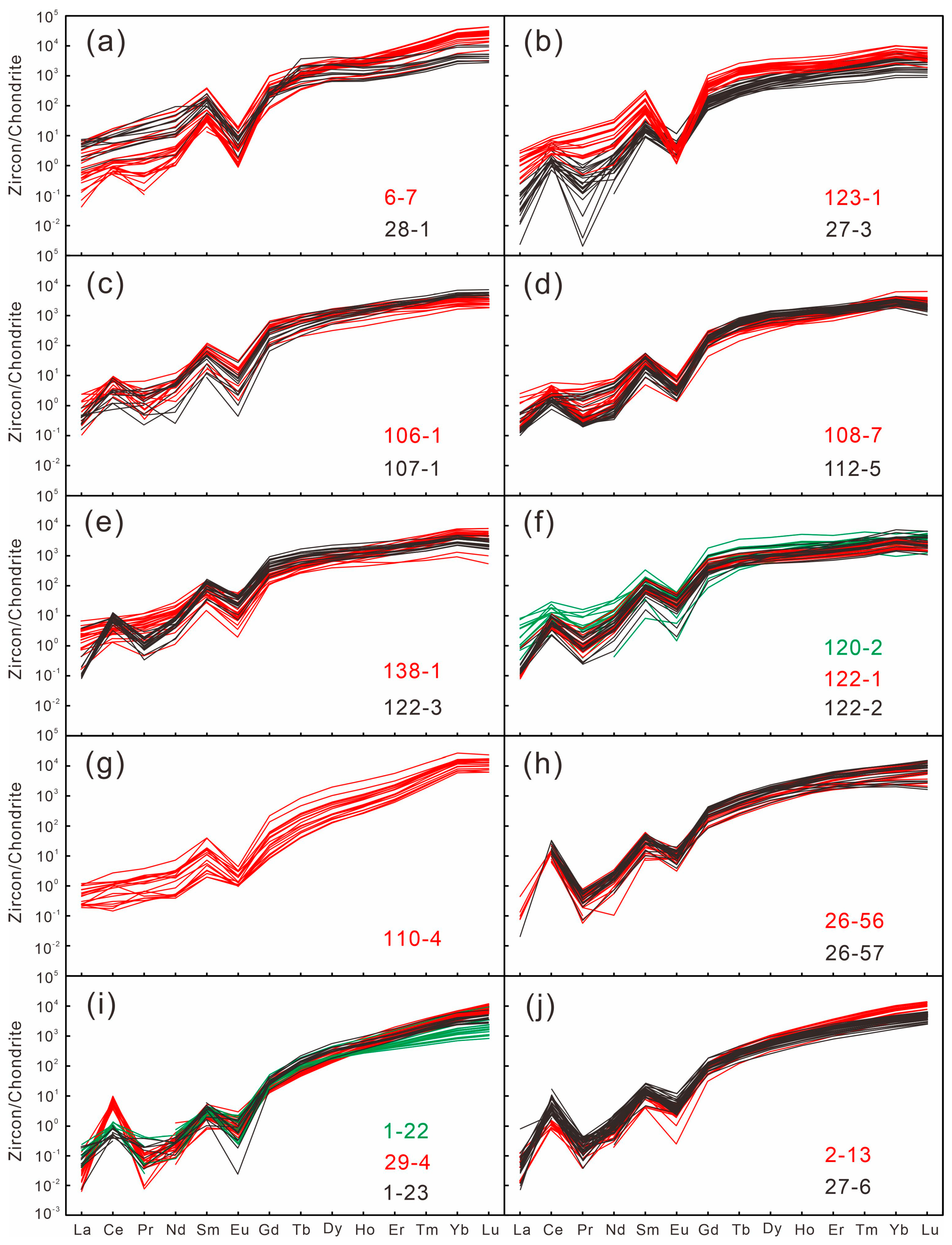 - Two distinct types of zircons are recognized in Himalayan leucogranites: Type I (low-U) zircons exhibit well-defined oscillatory zoning and have U concentrations mostly below 5000 ppm; Type II (high-U) zircons are characterized by spongy textures and U concentrations mostly exceeding 5000 ppm.