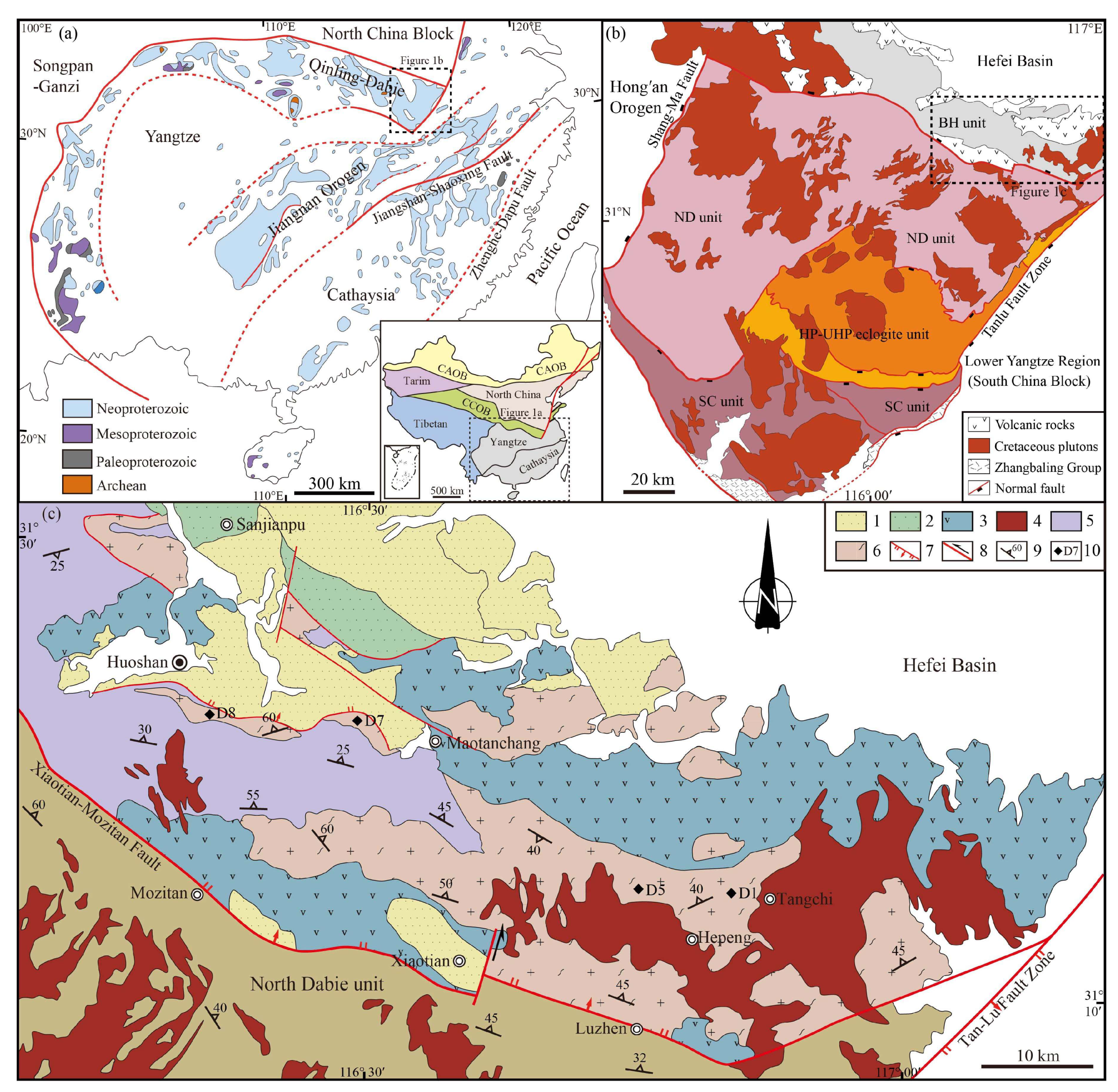 - Tuo, J.C.; Wu, C.; Wang, G.S.; Wu, J.W.; Zhou, Z.G.; Li, J.L.; Haproff, P.J. Neoproterozoic–mesozoic tectono-magmatic evolution of the northern Dabie Orogen, eastern China. J. Asian Earth Sci. 2022, 228, 105138. [Google Scholar] [CrossRef]