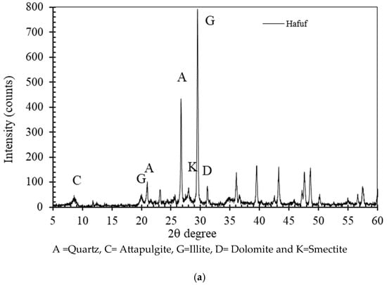 Information provided by Moore and Reynolds [29] and Brown and Brindley [30] was consulted to identify clay minerals. At least five clays from various regions of Saudi Arabia were found to contain the clay mineral groups montmorillonite/palygorskite, illite, and kaolinite.