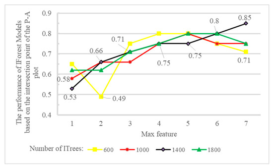The effect of the two hyperparameters “maximum feature” and “number of ITrees” on the performance of the IF algorithm.