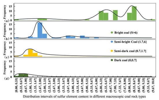 Macroscopic coal lithotypes identification method. (a) The distribution of S element in bright coal (b) Distribution of S element in semi-bright coal (c) Distribution of S element in semi-dark coal (d) The distribution of S element in dark coal.