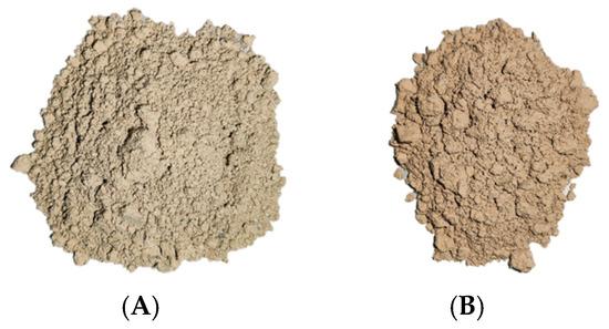 This study targeted typical clay-type lithium deposits from the Qaidam Basin, where two representative ore samples were collected (gray-brown clay mineral A and gray-green clay mineral B). A and B were dried and crushed (Figure 1) via standard geological sampling to guarantee the sample representativeness. The experimental reagents were deionized water and sulfuric acid (analytical-grade, Sinopharm Chemical Reagent Co., Ltd.,China).