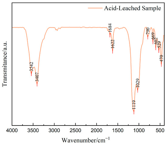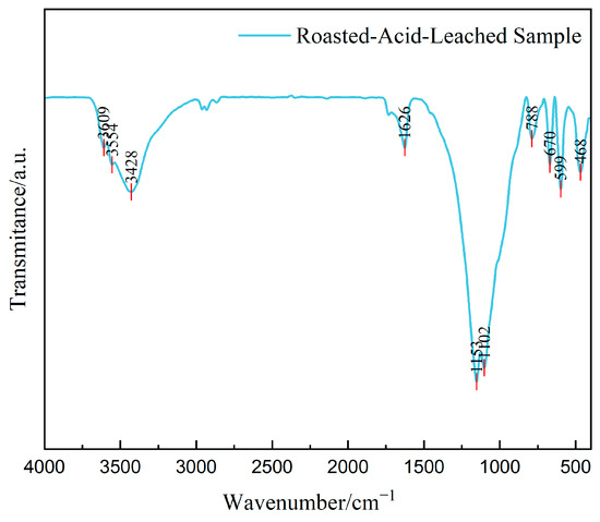 FTIR spectra of roasted–acid-leached B120–160 sample.