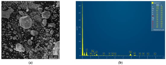 Both the input DSP nodules and the solid residue products were analyzed using Scanning Electron Microscopy (SEM) and Energy-Dispersive X-ray (EDX) Spectroscopy. The morphology and particle size were examined using a MIRA3 FE-SEM scanning electron microscope (TESCAN, Prague, Czech Republic), which also enabled semi-quantitative elemental analysis via EDX. The EDX data was processed with AZtec software v6.0 (Oxford Instruments, Oxford, UK).