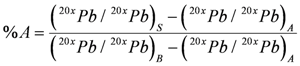 One of the significant advantages of using Pb isotopic fingerprinting methods is that accurate estimates of the relative contributions of Pb from the two sources can be made where a mixing line is defined by two distinct end-members. The estimates are typically based on a simple binary model [,,] where,