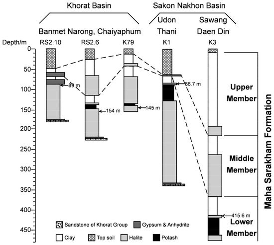 - Hite, R.J.; Japakasetr, T. Potash deposits of the Khorat plateau, Thailand and Laos. Econ. Geol. 1979, 74, 448–458. [Google Scholar] [CrossRef]