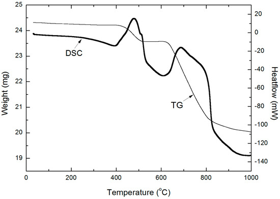 Thermogravimetric Analysis (TG) and differential scanning calorimetry (DSC) curves of zinc sulfide concentrate.