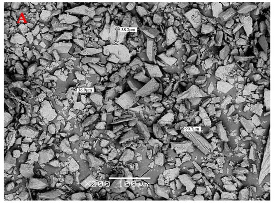SEM was used to determine the morphology of floated materials in flotation concentrates. After flotation, a concentrate sample was air-dried. The SEM images were acquired using a Quanta 250 scanning electron microscope (Thermo Fisher Scientific Inc., Waltham, MA, USA). The detailed operating parameters for the SEM analyses were as follows: the accelerating voltage was 30.00 kV, the working distance was 20.2 mm, the pressure was −1.21 × 10−4 Pa, and the spot size was 2.5 nm.