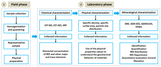 In order to satisfy the characterization requirements (i.e., detection limit) and to more easily investigate the REE mineralogy and geochemical behavior during kinetic tests, REE were concentrated to increase the geochemical responses (Figure 1).