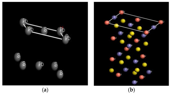 The crystal structure of galena (a) and chalcopyrite (b).