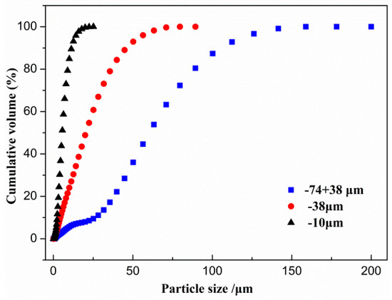 At present, most of the published literature commonly used the special mineral particle size as the flotation material in the suppressed efficiency research [11,15,22,23]. However, this ignores the influence of other size fraction particles in the studied depressant, especially for fine particles, even though it has been shown that the behavior of different sizes of particles may follow different trends [24,25].