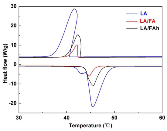 DSC curves of pure LA, LA/FA and LA/FAh.