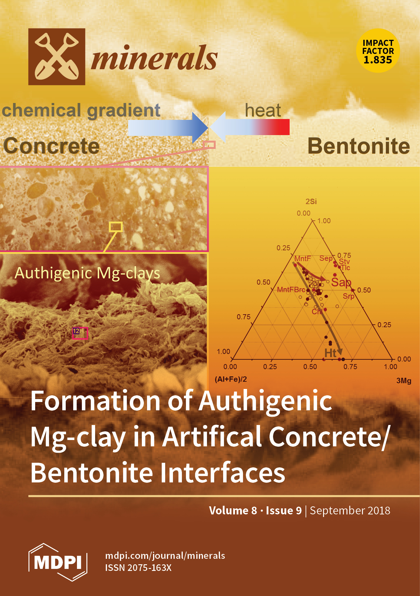 Cover Story: Artificial and singular geochemical environments are created around the engineered barrier systems (EBS) that are designed to isolate high-level nuclear wastes in deep geological repositories. A concrete-bentonite interface takes place within the EBS and produces a significant alkaline chemical environment. This paper discusses the formation of authigenic minerals, mostly Mg hydroxides and disordered hydrous Mg-silicates. They evolve to a saponitic composition through aging. This reactive system can be compared to the geochemical evolutionary reaction paths described in the formation of Mg-Clays as a common signature for natural alkaline-saline lacustrine environments found in semi-arid climates. It is also remarkable how the precipitation of these minerals buffers the pH, presumably preventing the progressive increase of pH to > 11 values and then protecting bentonite from further alteration. View this paper