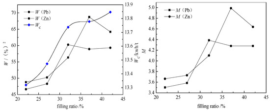 Effect of grinding filling ratio on the W(Pb), W(Zn), M(Pb) and M(Zn).