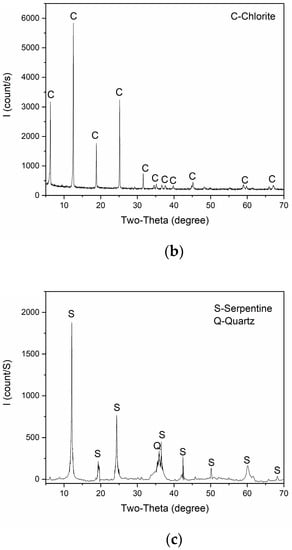 XRD spectra of the chalcopyrite (a), chlorite (b), and serpentine (c) samples