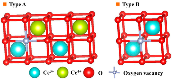 Two models expressing the local structure around oxygen vacancies in tetravalent cerium oxide [44].