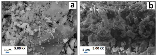 SEM micrographs of PS-SC (20 wt. % of SC) blends heated at 900 °C (a) and 1100 °C (b).