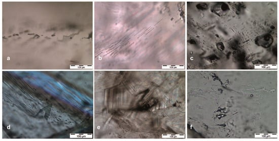 - Goldstein, R.H.; Reynolds, T.J. Systematics of Fluid Inclusions in Diagenetic Minerals. Short Course 31; Society of Economic Paleontologists and Mineralogists: Tulsa, OK, USA, 1994; 199p. [Google Scholar]